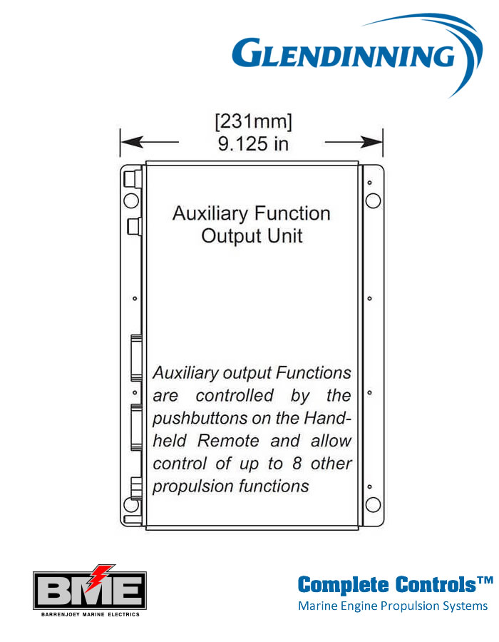 Up to 8 other propulsion functions can be added to the Handheld Remote through the Auxiliary Output Function Unit (i.e., engine stop/start, bow/stern thruster, and rudder control).